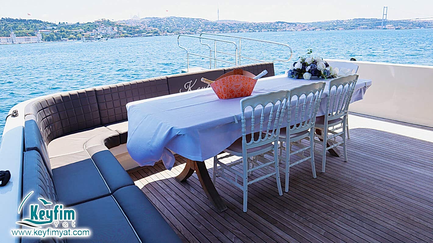 Keyfim Yat; kahvaltı, yemek ve kokteyl düzende en fazla 15-20 kişilik misafir grubunu sorunsuz şekilde ağırlayabilir. Sevdiklerinizle 2 kişilik baş başa romantik organizasyonlar planlayabileceğiniz gibi en fazla 15-20 kişilik katılımın olduğu arkadaş grubunuzla da özel gün organizasyonu yapabilirsiniz.